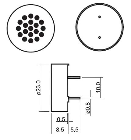 | Модель | Сопротив. | Мощность | Макс. мощность | Резонансная частота | Частотный диапазон | Интенсивность звука при 1 кГц | Диаметр | Высота | Магнит |