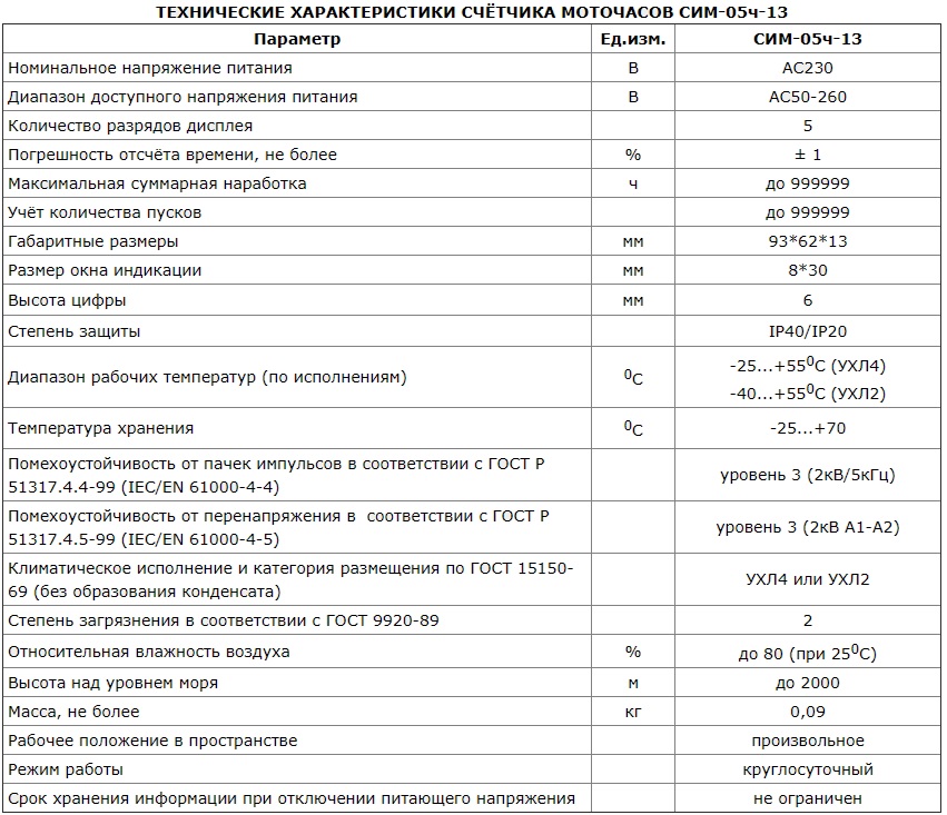 Счётчик моточасов СИМ-05ч-13 предназначен для учёта суммарной наработки оборудования, текущего времени работы оборудования и числа его включений в процессе эксплуатации.