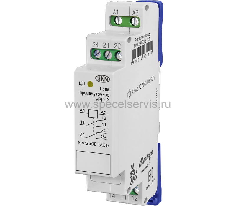Вспомогательное реле МРП-2 предназначено для гальванической развязки между силовыми цепями и цепями управления дистанционного включения нагрузки путём подачи управляющего напряжения на вход реле, а также для использования в качестве промежуточных реле.