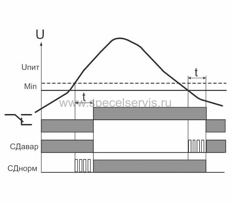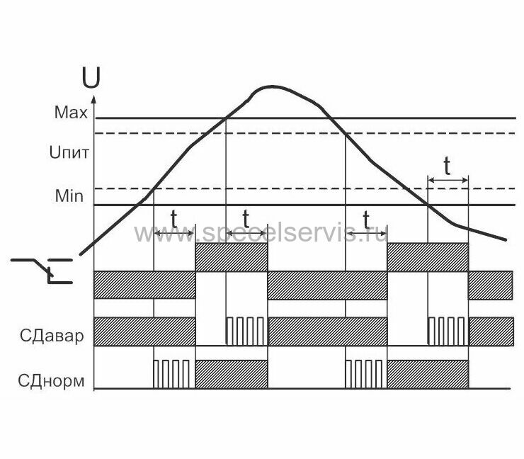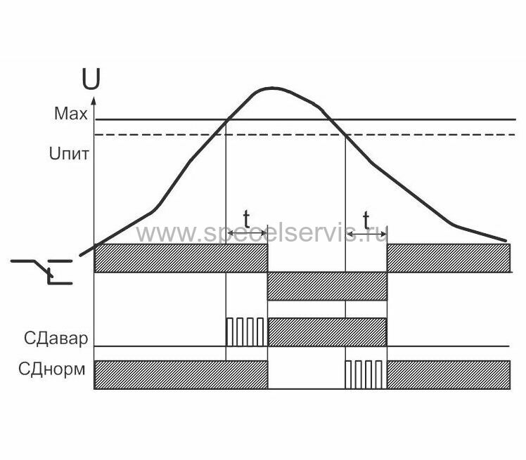 - Гистерезис напряжения порога срабатывания, Uном % 3