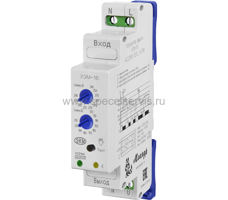 Устройство защиты многофункциональное УЗМ-16, устройство защиты от скачков напряжения, нагрузка 16А, один модуль
