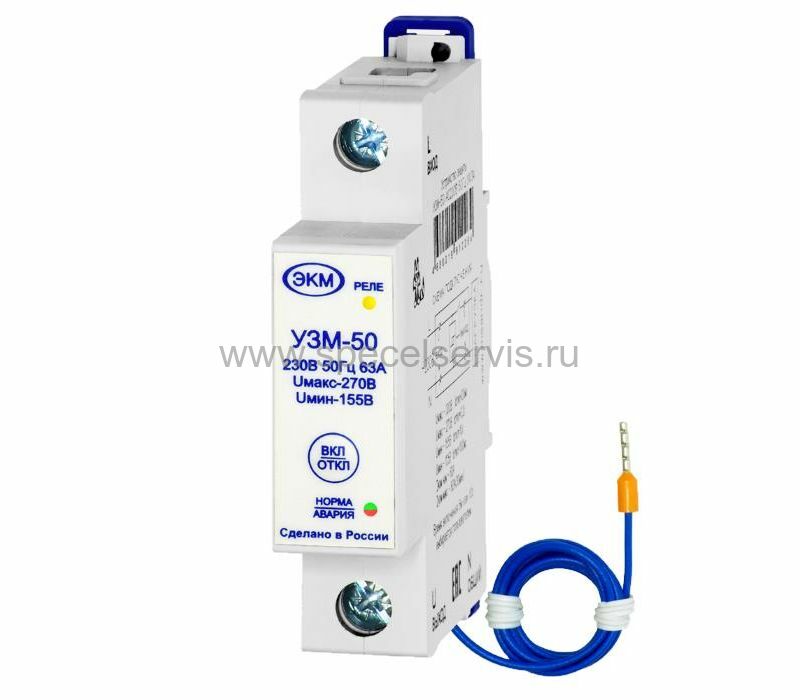 Реле контроля УЗМ-50 УХЛ4 имеет одну нормально разомкнутую контактную группу, заключено в пластиковый корпус и монтируется на обычную DIN-рейку или ровную поверхность. Оно может применяться в сетях любой конфигурации: TN-C, TN-S, TN-C-S или ТТ.
