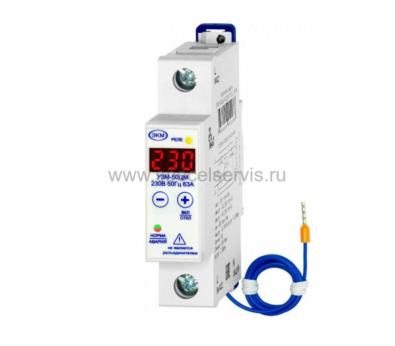 Реле контроля УЗМ-50ЦМ УХЛ2 обеспечивает контроль напряжения сети и причин срабатывания. Также предназначено для уменьшения пусковых токов при включении ёмкостных нагрузок. Устройство отключает оборудование от нагрузки при выходе сетевого напряжения за допустимые пределы и при импульсных скачках в однофазных сетях. Тем самым предотвращая выход оборудования из строя и возможное возгорание с последующим пожаром.