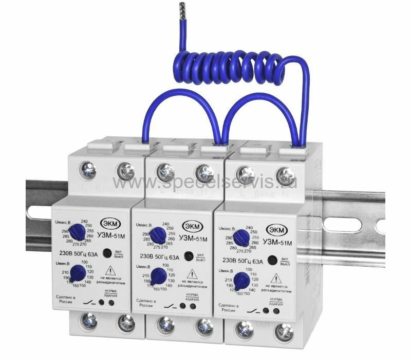 Устройство защиты УЗМ-51М УХЛ2 используется для защиты электроприборов от скачков напряжения; при выходе показаний за установленные границы по верхнему и нижнему пределам, реле произведет выключение коммутируемого оборудования.