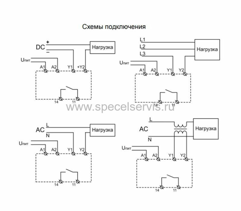 - Максимальное напряжение между цепями питания и контактами реле AC 2000 В (50Гц - 1мин)