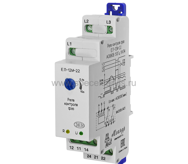 Реле контроля фаз предназначено для контроля трёхфазного линейного напряжения в трёхпроводных сетях (без нейтрали). Реле контролирует порядок чередования фаз, обрыв фаз, «слипание» фаз, превышение (снижение) напряжения выше (ниже) фиксированного значения.
