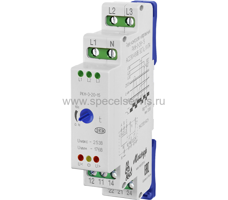 Реле контроля трехфазного 3х напряжения РКН-3-20-15