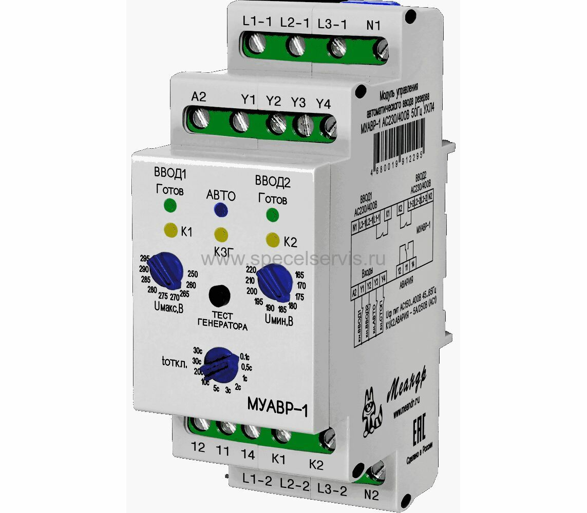 Модуль контролирует напряжение на основном и резервном вводах 1-фазной или 3-фазной сетей. Если напряжение в пределах нормы, питание нагрузки осуществляется от ввода с установленным приоритетом (ввод 1).
