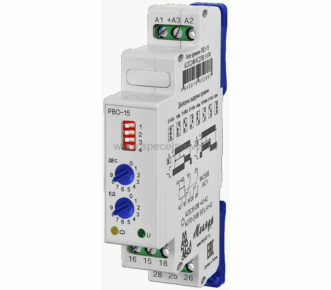 Реле времени РВО-15 (далее реле) предназначено для выдачи команд в цепи схем управления через контакты реле после отработки установленной выдержки времени по заданному алгоритму работы.