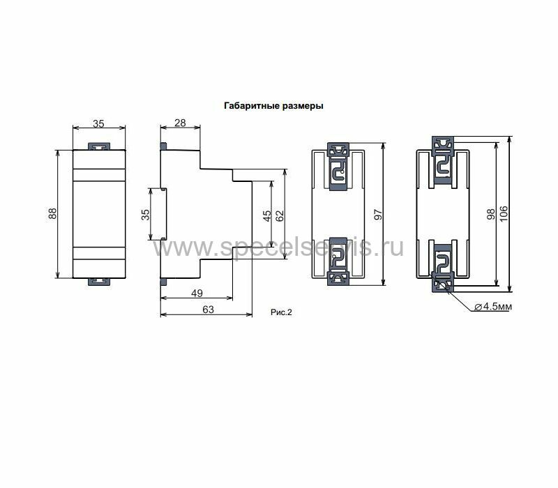 Выпускаются в унифицированном пластмассовом корпусе с передним присоединением проводов питания и коммутируемых электрических цепей. Крепление осуществляется на монтажную рейку-DIN шириной 35 мм (ГОСТ Р МЭК 60715-2003) или на ровную поверхность. Для установки реле на ровную поверхность, фиксаторы замков необходимо переставить в крайние отверстия, расположенные на тыльной стороне корпуса. Конструкция клемм обеспечивает надёжный зажим проводов сечением до 2,5мм2. Имеется возможность пломбирования крышки корпуса. Пломбировочная крышка поставляется отдельно по желанию заказчика. Наличие пломбировочной крышки повышает степень защиты от воздействия статического электричества и позволяет исключить несанкционированный доступ к органам управления выдержкой времени.