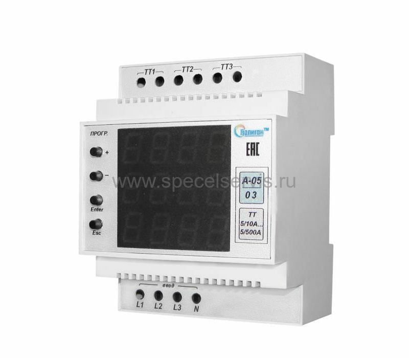 Амперметр А-05-03 выполнен в корпусе для установки на DIN-рейку.