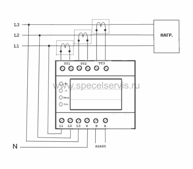 В нижней и верхней части изделия находятся клеммные колодки для подключения блока к сети и к вторичным обмоткам трансформаторов тока. Питание амперметра осуществляется непосредственно от контролируемой сети.