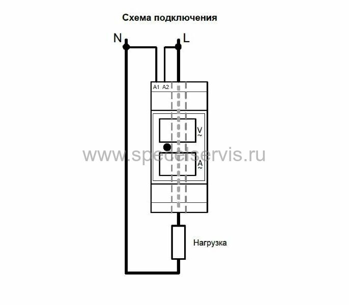 Устройство подключается в измеряемую цепь (клеммы А1 и А2). Ток измеряется бесконтактным способом, благодаря имеющемуся трансформатору тока.