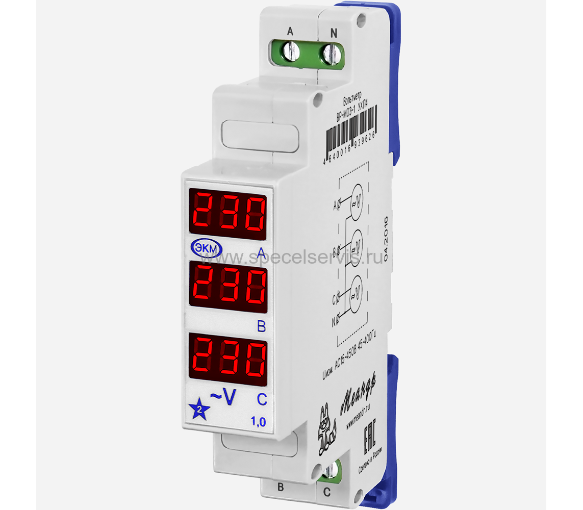 Трехфазный вольтметр ВР-М03 - это 3 независимых вольтметра в одном корпусе. Можно измерять не только фазные, но и линейные напряжения. Предназначен для технологического контроля величины напряжения в электрических цепях переменного тока, как в промышленных зонах, так и сферах ЖКХ, бытовом секторе, прочих объектах народного хозяйства. Прибор может применяться в составе систем автоматизированного контроля и управления технологическими процессами в качестве основных или дополнительных индикаторов на передвижных и стационарных объектах. Являются средством контроля.