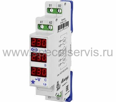 Вольтметр выпускается в унифицированном пластмассовом корпусе с передним присоединением проводов питания. Крепление осуществляется на монтажную рейку-DIN шириной 35мм (ГОСТ Р МЭК 60715-2003) или на ровную поверхность. Для установки вольтметра на ровную поверхность замки необходимо раздвинуть. Конструкция клемм обеспечивает надёжный зажим проводов сечением до 2,5мм2. На лицевой панели расположены трёх разрядные семисегментные индикаторы красного цвета отображающие величину напряжения питания в каждой фазе. Вольтметр содержит три гальванически развязанных цепи измерения. Вольтметр, в зависимости от схемы подключения, может использоваться для контроля напряжения в независимых линиях или в трёхфазных сетях для контроля линейных или фазных напряжений..