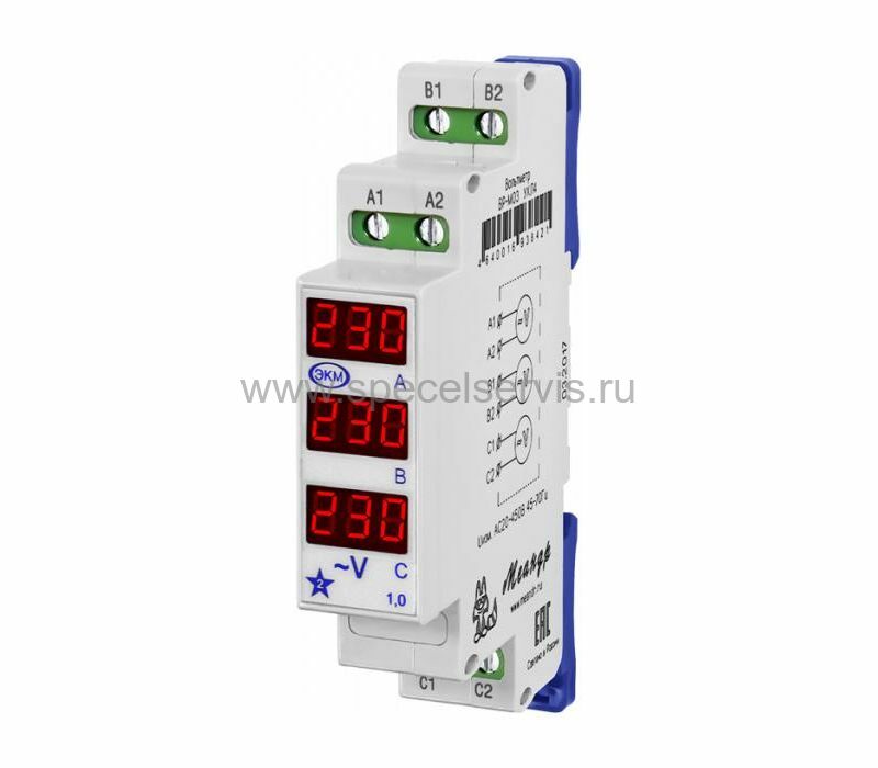 Трехфазный вольтметр ВР-М03 - это 3 независимых вольтметра в одном корпусе. Можно измерять не только фазные, но и линейные напряжения. Также можно измерять напряжения трёх независимых источников напряжения. Предназначен для технологического контроля величины напряжения в электрических цепях переменного тока, как в промышленных зонах, так и сферах ЖКХ, бытовом секторе, прочих объектах народного хозяйства. Может применяться в составе систем автоматизированного контроля и управления технологическими процессами в качестве основных или дополнительных индикаторов на передвижных и стационарных объектах. Являются средством контроля. Периодической поверке не подлежит.