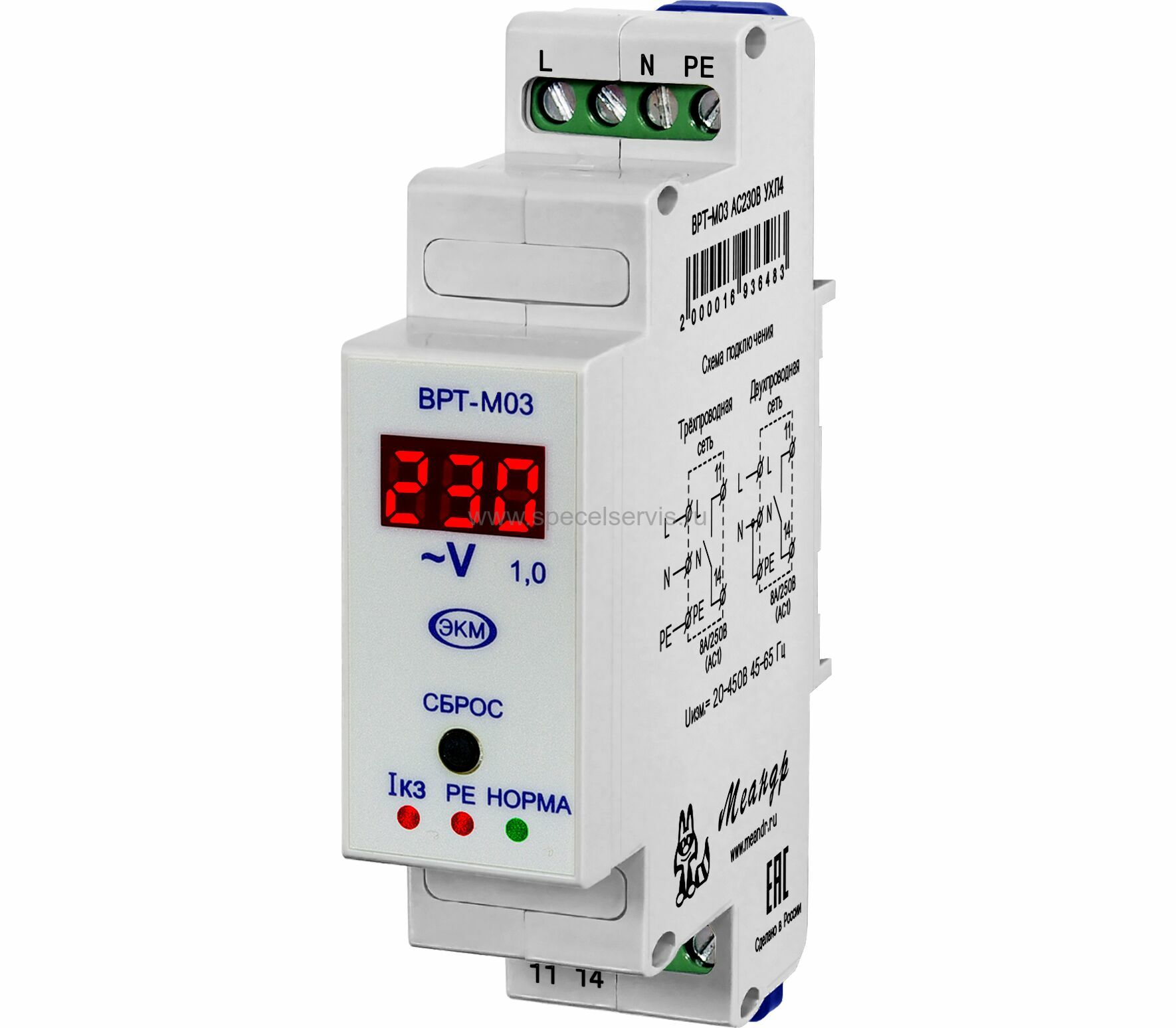 Цифровой одномодульный вольтметр прямого включения ВРТ-М03, совмещённый с измерителем тока короткого замыкания и сопротивления цепи фаза-ноль и контролем состояния защитного провода РЕ, предназначен для постоянного мониторинга напряжения сети. Кроме постоянного мониторинга напряжения сети, прибор позволяет оценить способность срабатывания установленных автоматических выключателей (правильность выбора их номинала) на вводе в дом или квартиру при коротком замыкании, т.е. хватит ему тока КЗ для мгновенного срабатывания или нет.