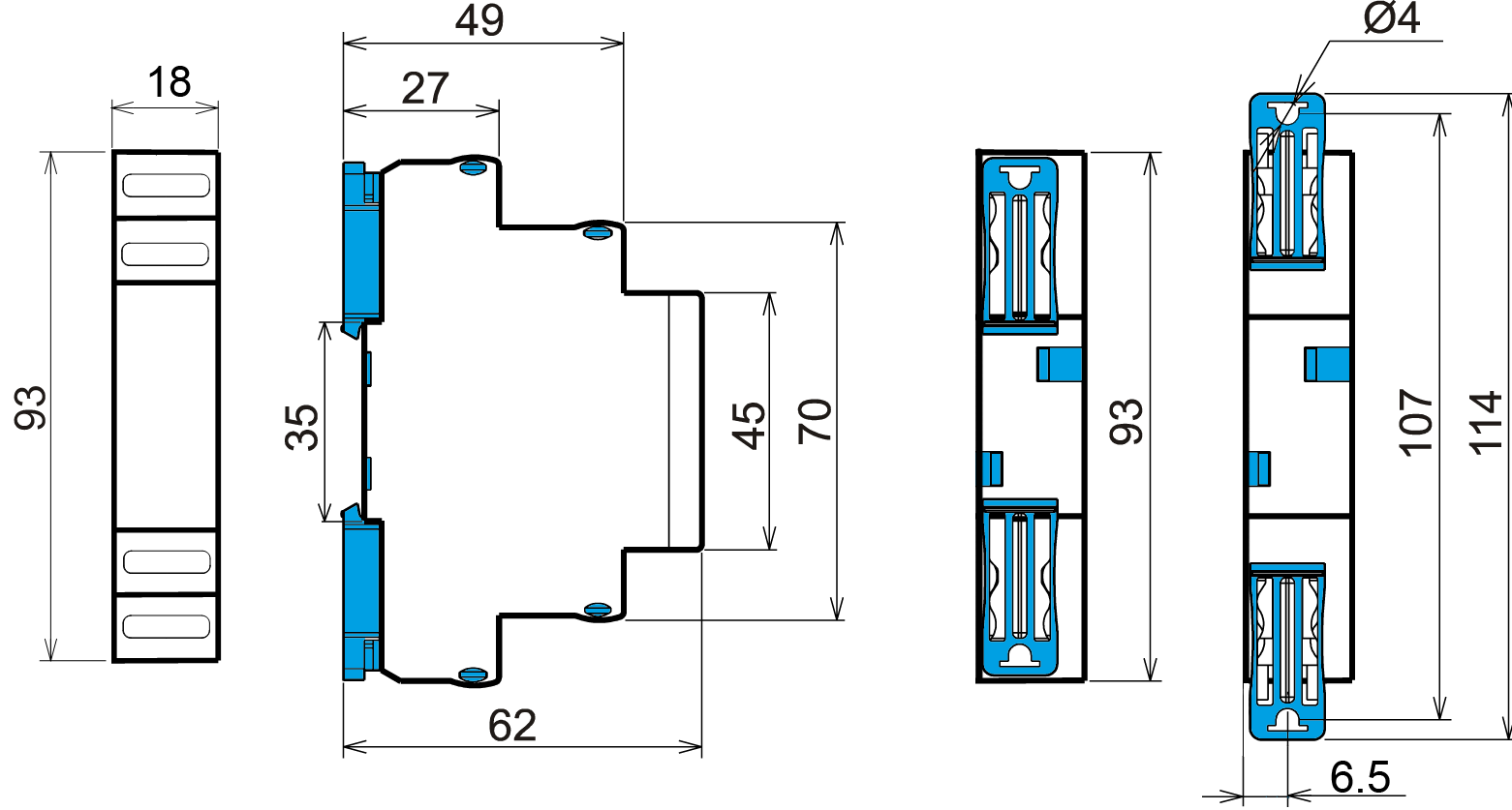 - Способ крепления DIN рейка 35мм/ровная поверхность;