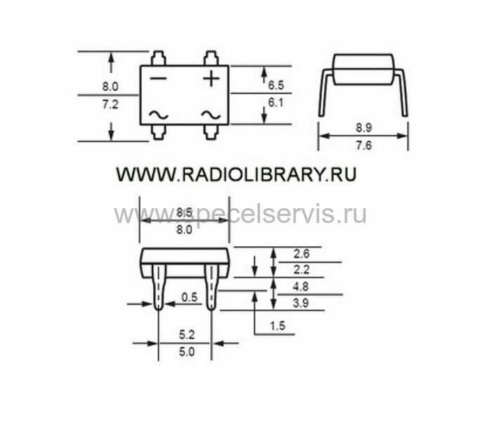 Выпускаются в литых пластмассовых корпусах с жесткими выводами для монтажа на печатную плату. Маркировка и схема соединения электродов с выводами приводятся на корпусе.