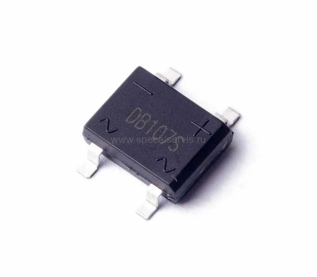 Диодный мост 1А, 1000 В. Предназначен для преобразования переменного тока в пульсирующий постоянный. Конструктивно диодный мост DB107S изготавливается в литом пластмассовом корпусе с жесткими выводами для монтажа на печатную плату. Маркировка и схема соединения электродов с выводами приводятся на корпусе.
