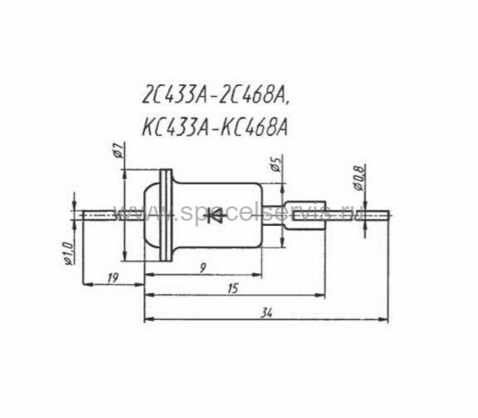 Предназначен для стабилизации номинального напряжения 6,8 В в диапазоне токов стабилизации 3...142 мА.