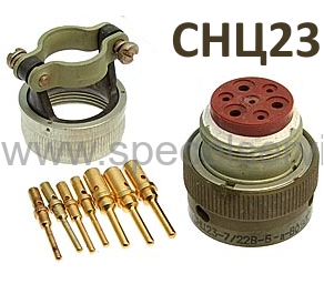 Розетки СНЦ23 сочленяются с вилками СНЦ27, 28, 29, выпускаемыми по техническим условиям бРО.364.ОЗВlУ, сочленение соединителей - байонетное.