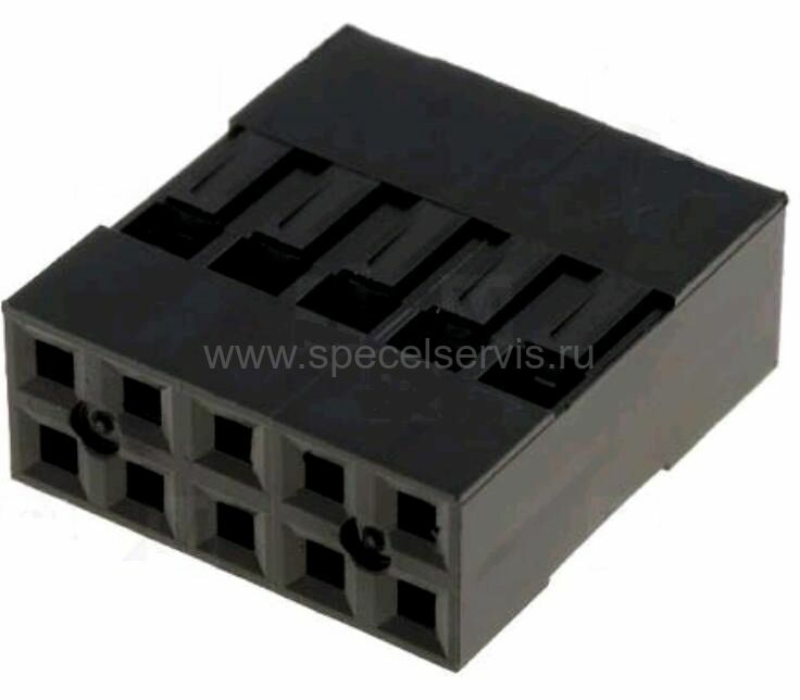 L-KLS1-540A-2x05-H – гнездо на кабель прямое 2х5, шаг 2,54. Серия разъемов BLD применяется для соединений типа устройство-кабель и используются в компьютерах, и других радиоэлектронных устройствах. Разъемы представляют собой двухрядные пластиковые корпуса и контакты к ним. Количество контактов соответствует количеству отверстий на корпусе разъема. Контакты можно монтировать на провод при помощи пайки или обжима. Для обжима контактов разъемов BLD лучше всего использовать специальный инструмент. Предварительно смонтированный на провод контакт, вставляется в колодку разъема и фиксируется в ней за счет специальных усиков, имеющихся на контакте. Сечение контакта штыревого соединителя имеет форму квадрата. Изолятор выполнен из конструкционного пластика полибутилентерефталата, усиленного стекловолокном UL–94V–O.