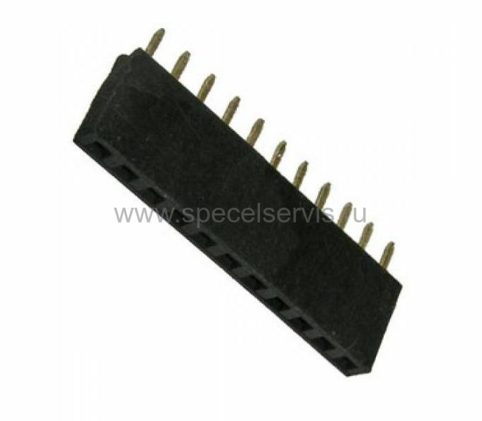 Разъем штыревой прямой – однорядное гнездо со штыревыми выводами с шагом 2,54 мм для установки на плату. Монтируется относительно платы вертикально. Разъемы применяются для межплатных соединений типа плата-плата совместно со штыревой ответной частью соответствующего шага. Сечение контакта штыревого соединителя имеет форму квадрата. Изолятор выполнен из конструкционного пластика полибутилентерефталата, усиленного стекловолокном UL–94V–O, высота изолятора 8,4 мм.