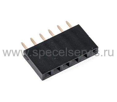 Разъем штыревой прямой – однорядное гнездо со штыревыми выводами с шагом 2,54 мм для установки на плату. Монтируется относительно платы вертикально. Разъемы применяются для межплатных соединений типа плата-плата совместно со штыревой ответной частью соответствующего шага. Сечение контакта штыревого соединителя имеет форму квадрата. Изолятор выполнен из конструкционного пластика полибутилентерефталата, усиленного стекловолокном UL–94V–O, высота изолятора 8,4 мм.