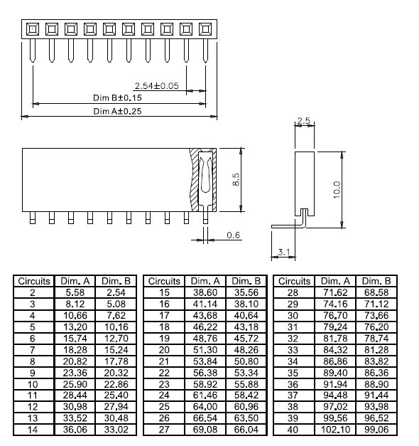 - Шаг контактов: 2,54 мм;