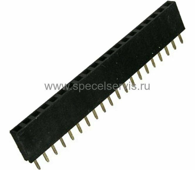 Разъем штыревой прямой – однорядное гнездо со штыревыми выводами с шагом 2 мм для установки на плату. Монтируется относительно платы вертикально. Разъемы применяются для межплатных соединений типа плата-плата совместно со штыревой ответной частью соответствующего шага. Сечение контакта штыревого соединителя имеет форму квадрата. Изолятор выполнен из конструкционного пластика полибутилентерефталата, усиленного стекловолокном UL–94V–O, высота изолятора 4,3 мм.