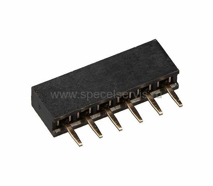 Разъем штыревой прямой – однорядное гнездо со штыревыми выводами с шагом 2 мм для установки на плату. Монтируется относительно платы вертикально. Разъемы применяются для межплатных соединений типа плата-плата совместно со штыревой ответной частью соответствующего шага. Сечение контакта штыревого соединителя имеет форму квадрата. Изолятор выполнен из конструкционного пластика полибутилентерефталата, усиленного стекловолокном UL–94V–O, высота изолятора 4,3 мм.