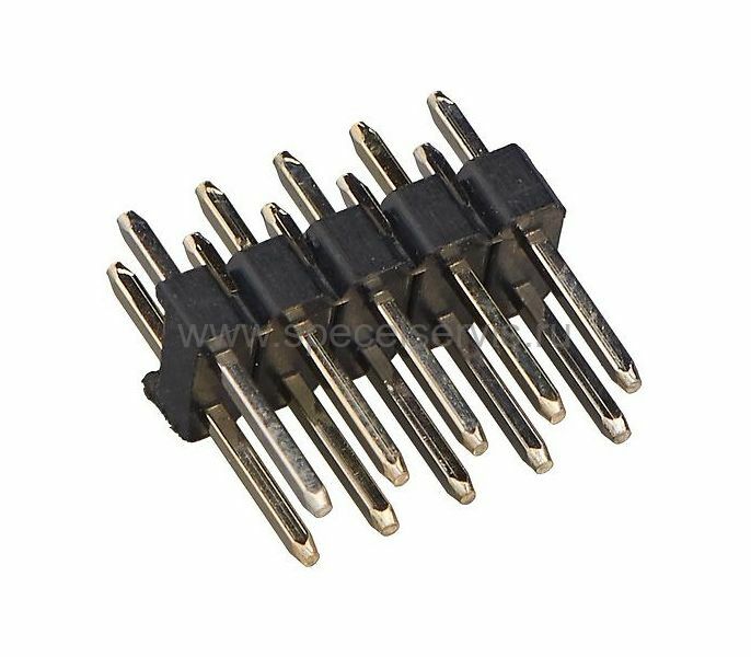 Разъем штыревой прямой – двухрядная вилка со штыревыми контактами с шагом 2,54 мм для установки на плату. Монтируется относительно платы вертикально. Разъемы применяются для подключения кабельных шлейфов, а также для межплатных соединений типа плата-плата совместно с розеточной ответной частью соответствующего шага. Сечение контакта штыревого соединителя имеет форму квадрата. Изолятор выполнен из конструкционного пластика полибутилентерефталата, усиленного стекловолокном UL–94V–O, высота изолятора 2,54 мм.