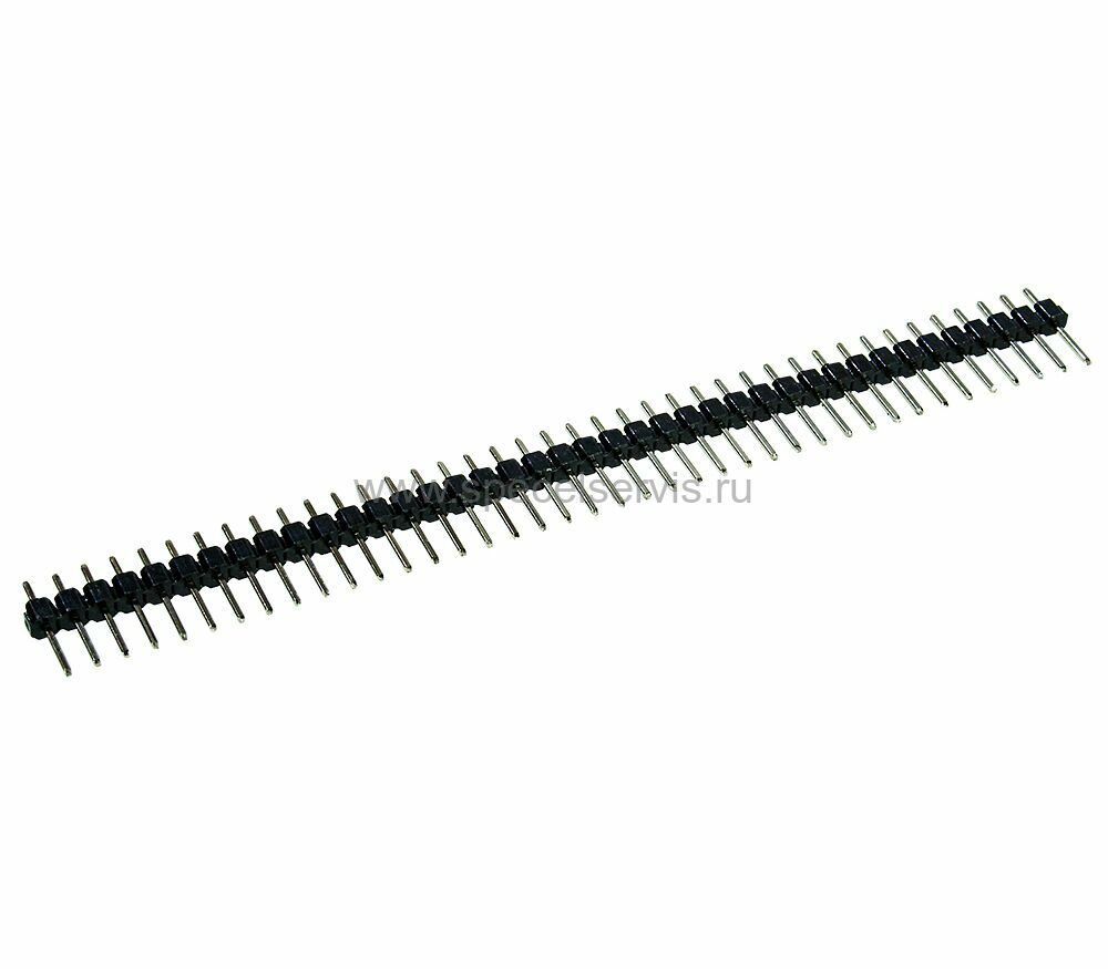 Разъем штыревой прямой – двухрядная вилка со штыревыми контактами с шагом 2,0 мм для установки на плату. Монтируется относительно платы вертикально. Разъемы применяются для подключения кабельных шлейфов, а также для межплатных соединений типа плата-плата совместно с розеточной ответной частью соответствующего шага. Сечение контакта штыревого соединителя имеет форму квадрата. Изолятор выполнен из конструкционного пластика полибутилентерефталата, усиленного стекловолокном UL–94V–O, высота изолятора 2,54 мм.