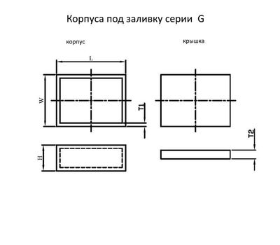 | Корпус с крышкой | LxWxHxT1 | Крышка | LxWxHxT2 |