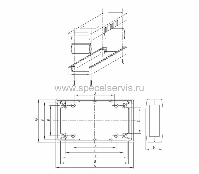 Приборный корпус G454 производится из пластика. Он идеально подходят для создания настольных приборов, например телекоммуникационного оборудования. Прочная и слегка шероховатая поверхность крышки и днища защищает от царапин, для их надежного соединения используйте 4 винта М3. Конструкция рассчитана на изоляцию от окружающей среды по стандартам IP54 или IEC 529. Направляющие пазы обеспечивают вертикальный, а специальные приливы - горизонтальный монтаж платы.