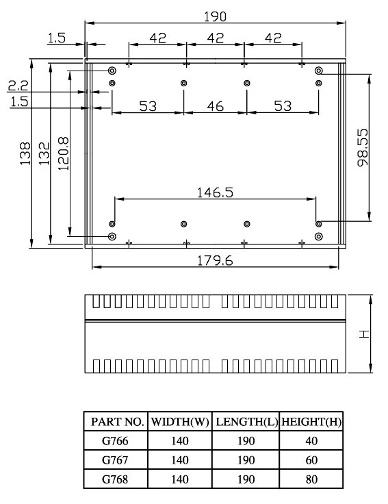 Корпус пластмассовый G766A алюминиевые панели, 140х190х40
