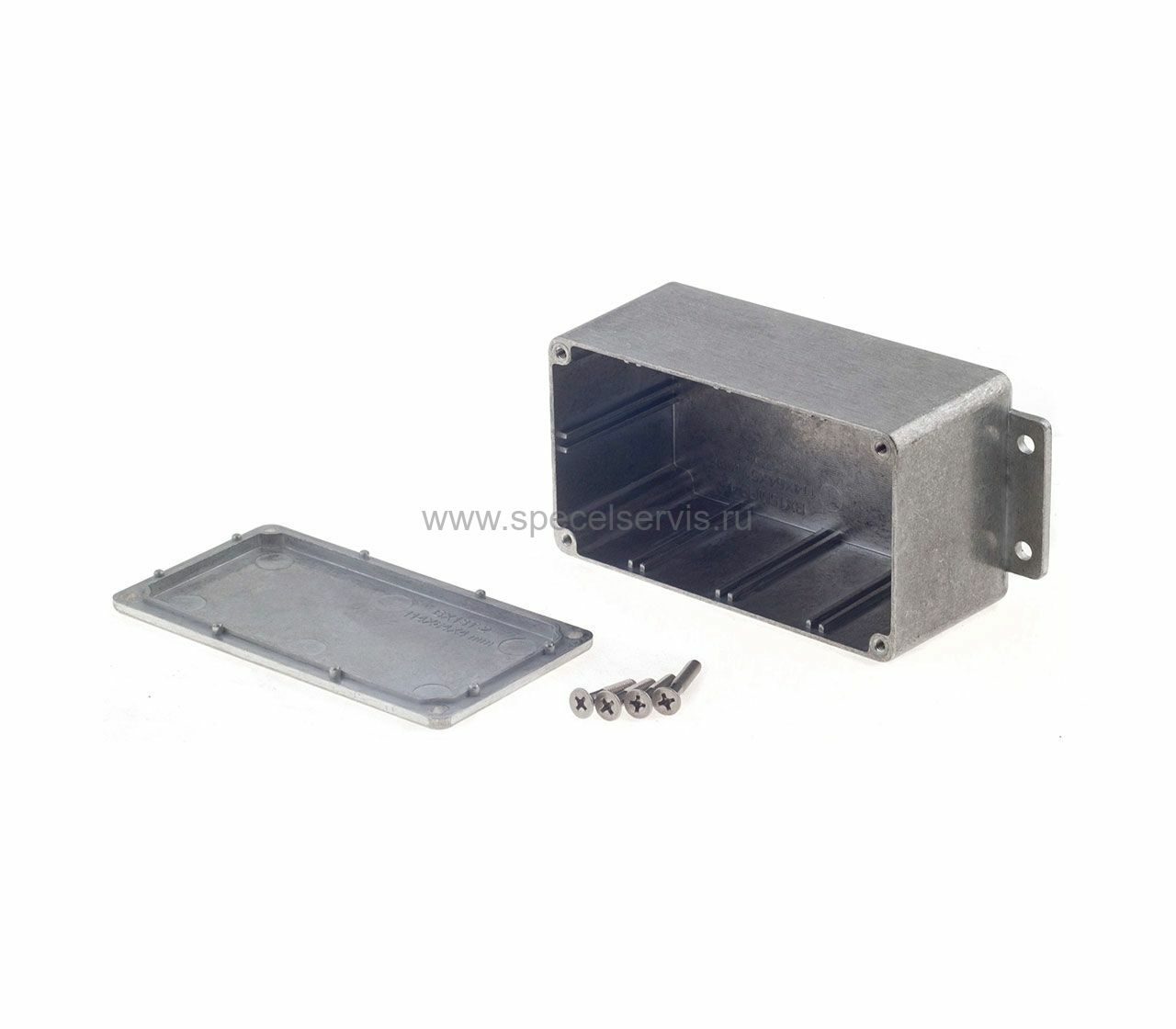 Выполненный из алюминия этот металлический корпус имеет фланцы для монтажа на стену или горизонтальную поверхность.