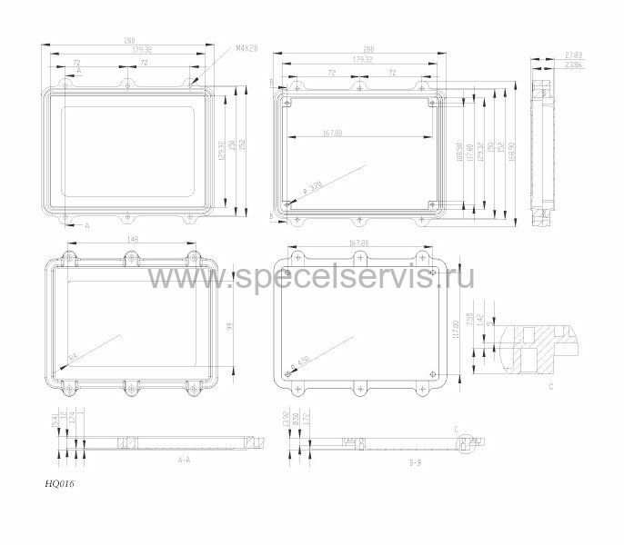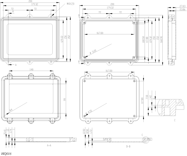 Корпус алюминиевый HQ016SLG, герметичный, 200x150x28 мм