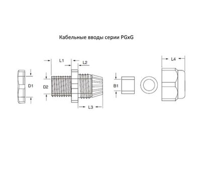 | Тип | D1(мм) | D2(мм) | L1(мм) | L2(мм) | L3(мм) | L4(мм) | B1(мм) | Диаметр кабеля (мм) |