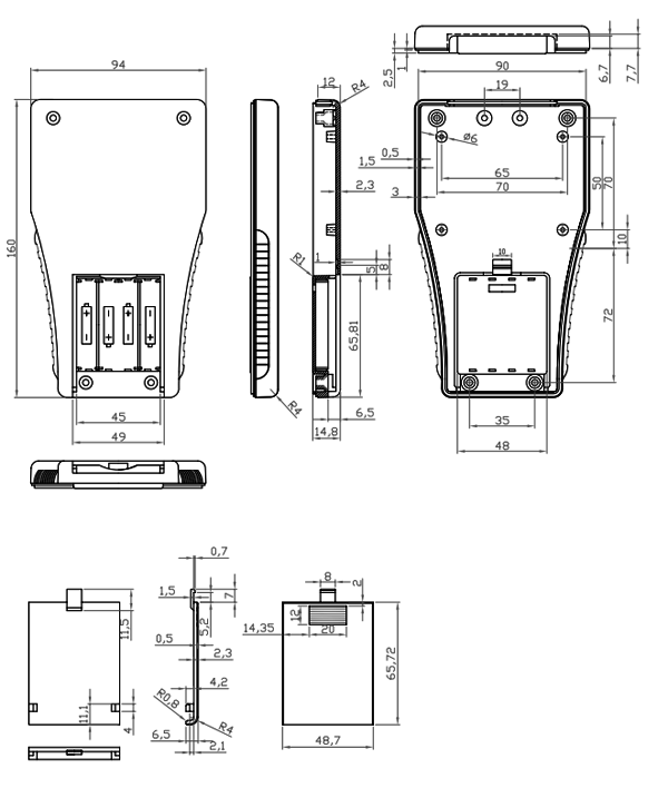Корпус пластиковый G808B(BC), 160x94x14.8/78x52мм, с батарейным отсеком