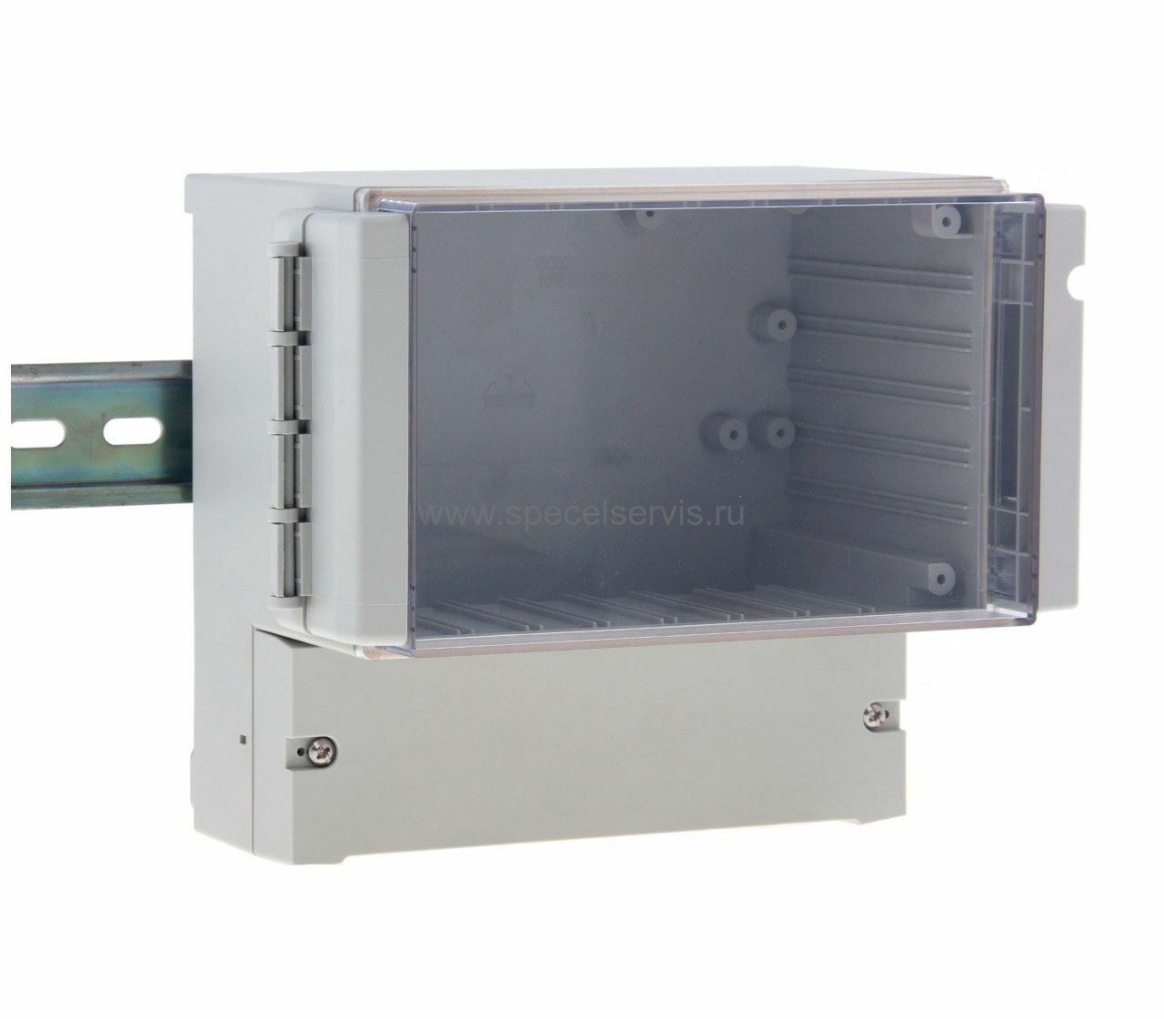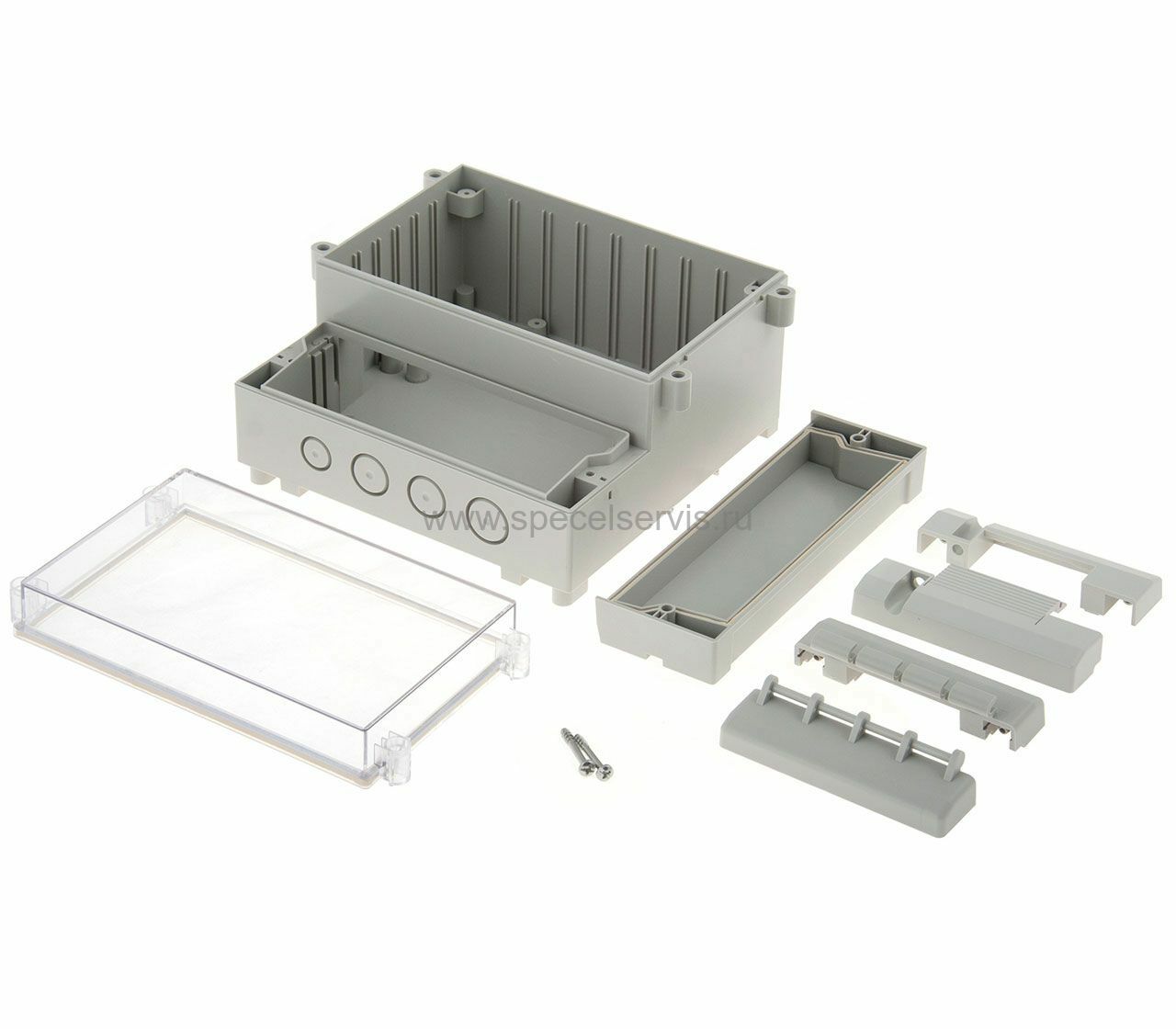 Производится из ударопрочного жаростойкого ABS пластика UL-94V0. Обеспечивается защита от проникновения пыли и влаги по стандарту IP65. В комплект поставки входит прозрачная крышка. Габаритные размеры составляют: по длине 166 мм, по ширине 161 мм и по высоте 93 мм. На внутренней поверхности корпуса отлиты стойки для горизонтального и направляющие для вертикального размещения печатных плат.