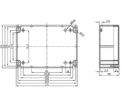 Корпус G214 пластиковый, герметичный, 171x121x55 мм