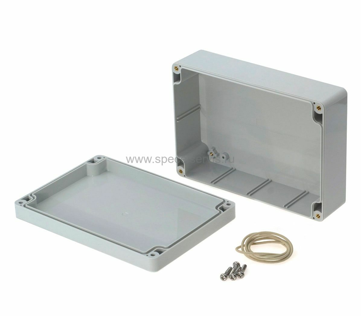 Герметизация корпуса обеспечивается высокой точностью изготовления, неопреновой прокладкой и расположением отверстий для крепления крышки снаружи области герметизации. К коробе отлиты направляющие для размещения печатных плат. Прочный и легкий поликарбонат гарантирует удобство эксплуатации.