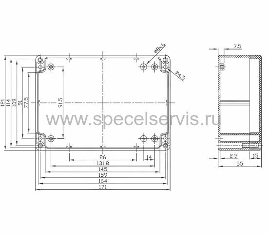 | темно-серый | ABS | 171 x 121 x 80 | |