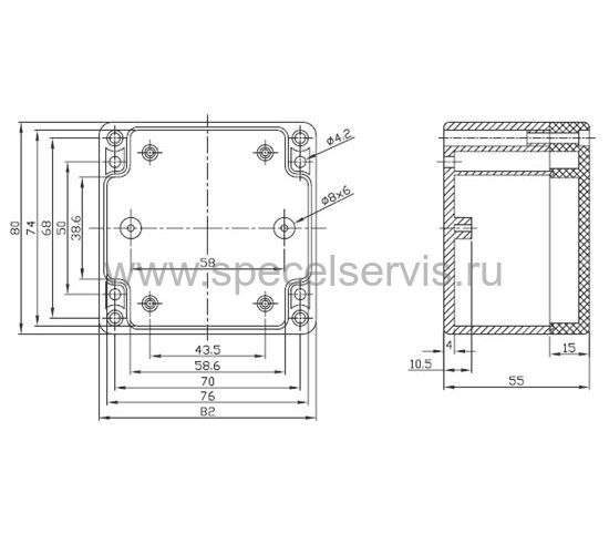 Корпус G256, герметичный, 82 x 80 x 55