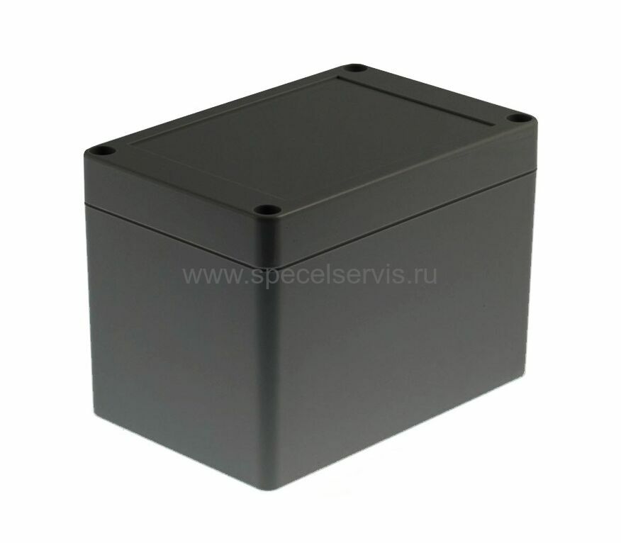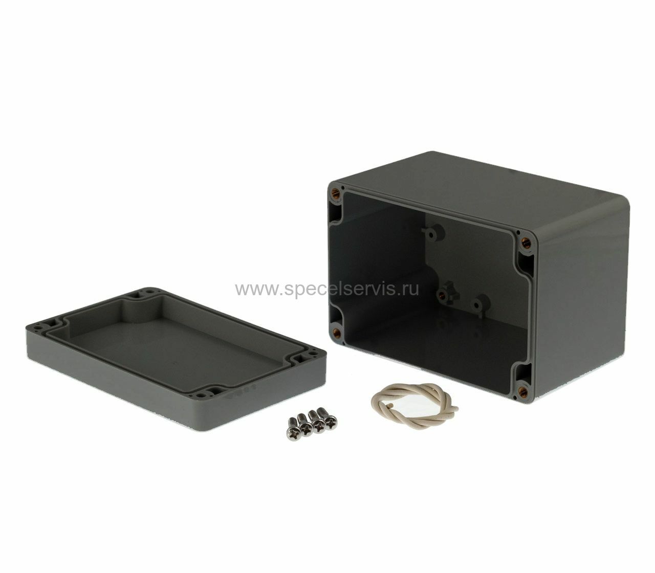 Благодаря специальной конструкции соединяемых граней корпуса и крышки, а так же специальной уплотнительной прокладке внутрь не попадет влага или пыль. Изделие изготавливается из высокопрочного пластика АБС темно-серого цвета. Финиш матовый, мелкошероховатый. Отпечатки пальцев и другие загрязнения на такой поверхности практически не заметны.