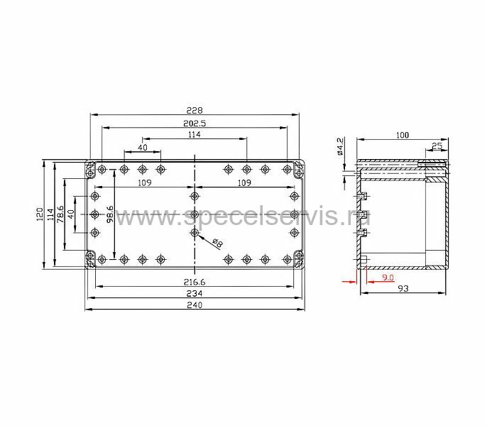 Корпус пластмассовый G3121, герметичный, 240 x 120 x 100