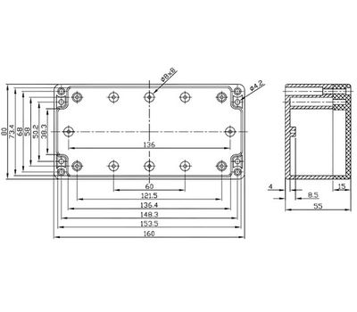 Корпус пластмассовый G368, герметичный, 160 x 80 x 55