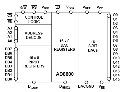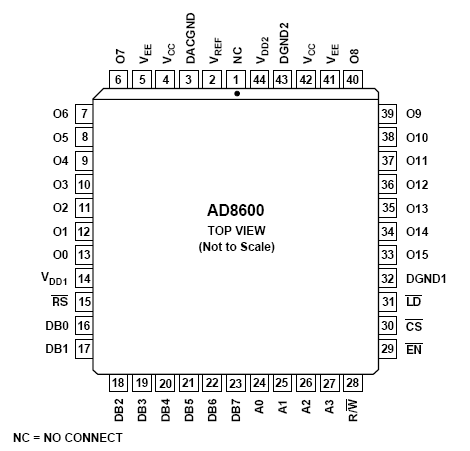 Шестнадцатиканальный 8-битный ЦАП [PLCC-44]